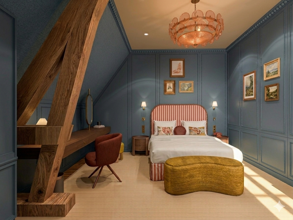 Au Château du Portereau, les 26 chambres et suites rénovées avec soin offrent chacune une atmosphère singulière où le temps ralentit. Au Château comme au Pavillon, la décoration subtilement inspirée de l’histoire du lieu accompagne la lumière et le calme, invitant à savourer chaque instant de votre séjour.